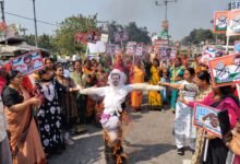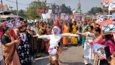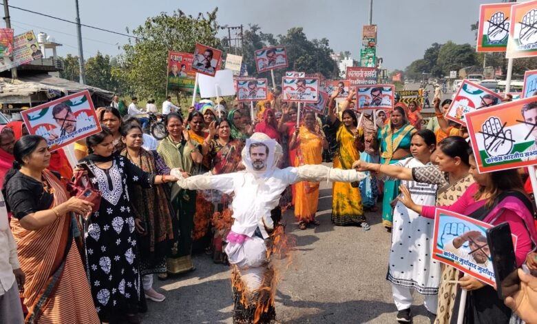 कांग्रेस की नग्नता के विरोध में भाजपा महिला मोर्चा ने फूंका राहुल गांधी का पुतला