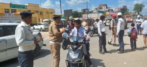 प्रभारी यातायात मय टीम ने नगर क्षेत्र में अभियान के दौरान लोगों को सड़क सुरक्षा से जुड़े नियमों की जानकारी दी। इस दौरान विशेष रूप से स्कूल के छात्र-छात्राओं को जागरूक किया गया।