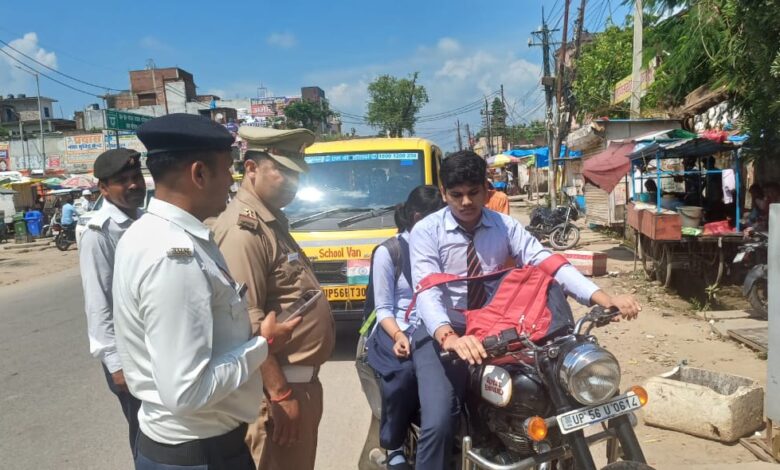 महराजगंज में पुलिस ने चलाया यातायात जागरूकता अभियान, स्कूली छात्रों को बताए नियम