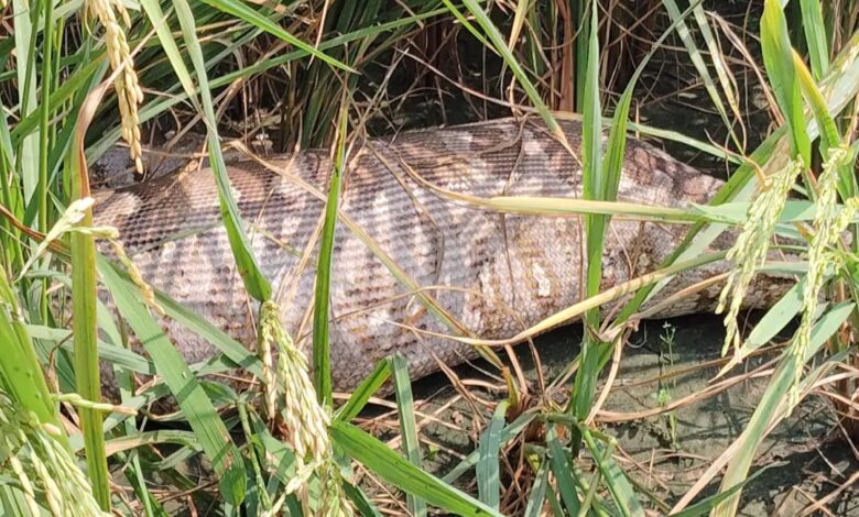 धान के खेत में निकला विशालकाय अजगर, गांव में मचा हड़कंप