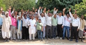 निचलौल:क्षतिग्रस्त सड़कों के निर्माण की मांग को लेकर आम आदमी पार्टी का प्रदर्शन