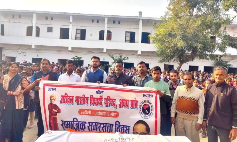रुदौली-अयोध्या। अखिल भारतीय विद्यार्थी परिषद रुदौली इकाई द्वारा सामाजिक समरसता दिवस के अवसर पर डॉक्टर भीमराव अंबेडकर जी के महापरिनिर्वाण दिवस पर श्री हंस इंटर कॉलेज रौजागांव में संगोष्ठी का आयोजन किया गया। इसमें कार्यक्रम का शुभारंभ प्रांत संयोजक सेवार्थ विद्यार्थी ऋषभ गुप्ता, नगर उपाध्यक्ष अमृत लाल यादव एवं नगर मंत्री नितेश कश्यप ने श्रद्धा सुमन अर्पित कर किया। प्रांत संयोजक ऋषभ गुप्ता ने कहा कि बाबा साहब ने कहा था कि हमारी पहचान न जाती से न क्षेत्रवाद से बल्कि हमारी पहचान शुरू से और अंतिम यात्रा तक भारतीय के रूप में होनी चाहिए। एवं महापरिनिर्वाण दिवस हमे याद दिलाता है संघर्ष और दृढ़ संकल्प के माध्यम से भी परिवर्तन संभव है। इस अवसर पर नगर उपाध्यक्ष अमृत लाल यादव ने भी अपने विचार व्यक्त किया। नगर मंत्री नितेश कश्यप ने कार्यक्रम में आए सभी का आभार व्यक्त किया। इस अवसर पर कालेज प्रबन्धक सतीश यादव, नगर सोशल मीडिया संयोजक शिवम विश्वकर्मा, नगर कार्यकारिणी सदस्य रवि कुमार शिक्षकगण एवं अन्य कार्यकर्ता उपस्थित रहे।
