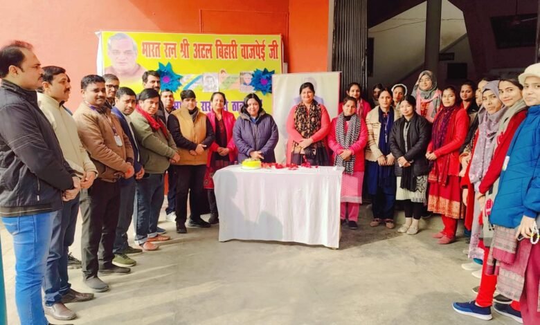 केक काटकर डीएसएम लायंस पब्लिक स्कूल में मनाया गया अटल बिहारी वाजपेयी का जन्मदिवस