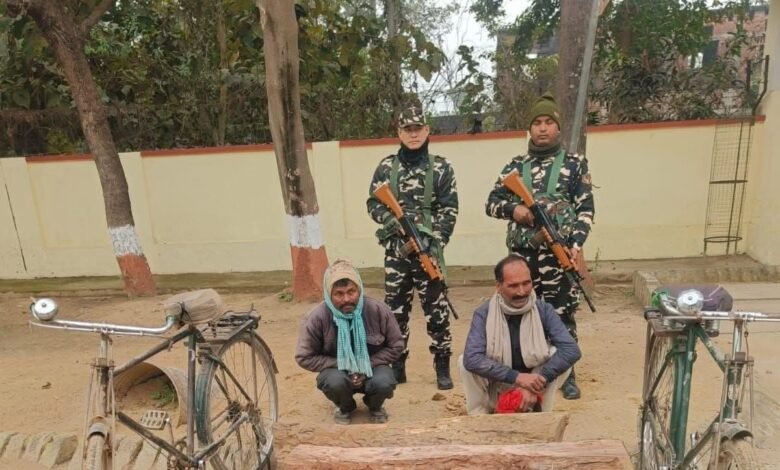 जानकारी के अनुसार, शनिवार को एसएसबी के जवान सीमा क्षेत्र में नियमित गश्त कर रहे थे। इसी दौरान भरवलिया चंदन नदी बांध के पास दो व्यक्ति साइकिल पर सागौन की लकड़ी ले जाते हुए दिखाई दिए। संदेह होने पर जवानों ने उन्हें रोककर पूछताछ की, लेकिन लकड़ी से संबंधित कोई वैध दस्तावेज नहीं दिखा सके।