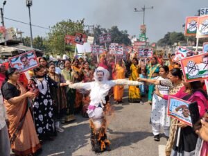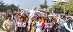 कांग्रेस की नग्नता के विरोध में भाजपा महिला मोर्चा ने फूंका राहुल गांधी का पुतला