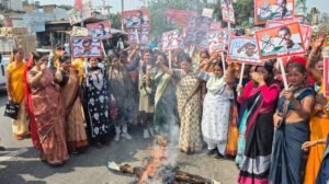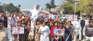 ए आई समिट में कांग्रेस के अर्धनग्न प्रदर्शन के जबाव में भाजपा महिला मोर्चा ने राहुल गांधी का पुतला फूंका