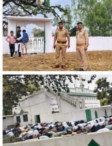 रूदौली कोतवाली के अंतर्गत ग्रामणी इलाको में ईद उल फितर की नमाज विभिन्न मस्जिदों में पूरे अकीदत, उल्लास और शांतिपूर्ण माहौल में अदा की गई। सुबह से ही नमाजियों की भारी भीड़ उमड़ी और लोगों ने अमन-चैन, भाईचारे व खुशहाली बनी रहे की दुआएं मांगीं।ईदगाह में बड़ी संख्या में नमाजियों ने नमाज अदा की, वहीं कोटरा, विचारा,हलीमनगर, ऐथर, रहीमगंज, कोपेपुर, भेलसर , अल्हवाना,समेत क्षेत्र की अन्य मस्जिदों में भी नमाजियों ने पूरे धार्मिक भाव के साथ नमाज पढ़ी। नमाज के बाद लोगों ने एक-दूसरे को गले मिलकर ईद की मुबारकबाद दी।जिससे पूरे इलाके में उत्सव और भाईचारे का माहौल नजर आया। वहीं दूसरी ओर उक्त थाना क्षेत्र के नगर में ईद की नमाज सकुशल शांतिपूर्ण संपन्न हुई । ईद की नमाज सकुशल सम्पन्न कराने हेतु कराने के लिए एडीएम, एसडीएम संतोष कुमार, एसपी आर ए बलवंत चौधरी, सीओ आशीष निगम व कोतवाल संजय मौर्या ने शुजागंज चौकी प्रभारी अभिषेक सिंह, भेलसर चौकी इंचार्ज युवराज सिंह,उपनिरीक्षक राकेश यादव कांस्टेबल अभिषेक कुमार लोकेश कुमार रवि चौधरी, दिवान इंद्रेश यादव के साथ क्षेत्र में भ्रमण कर व्यवस्थाओं का जायजा लिया।